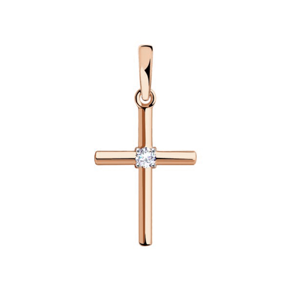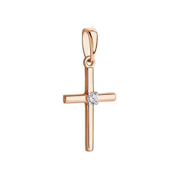 Подвеска Крест из красного золота 585 пробы с фианитом от Sokolov