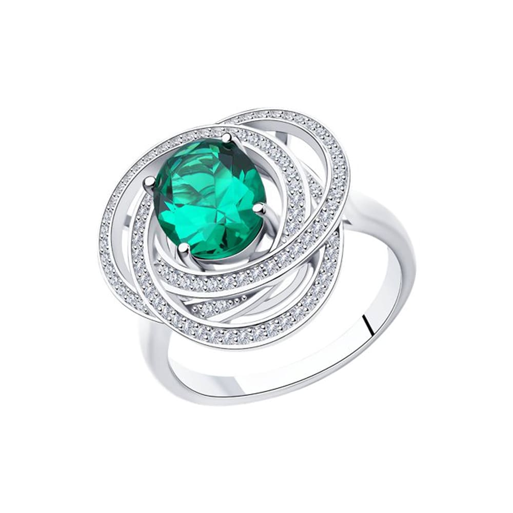 Sokolov Серебряное кольцо 925 пробы с зелёным ситаллами и фианитами
