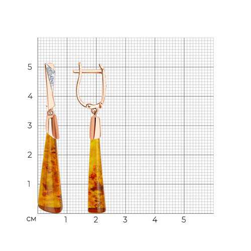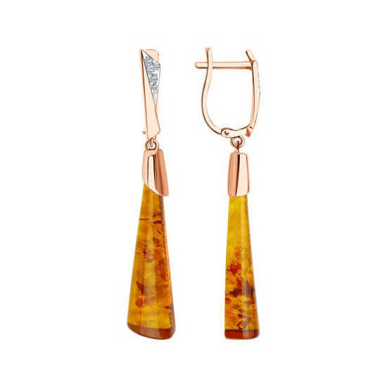 Серьги из красного золота 585 пробы с янтарём и фианитами