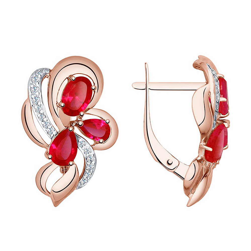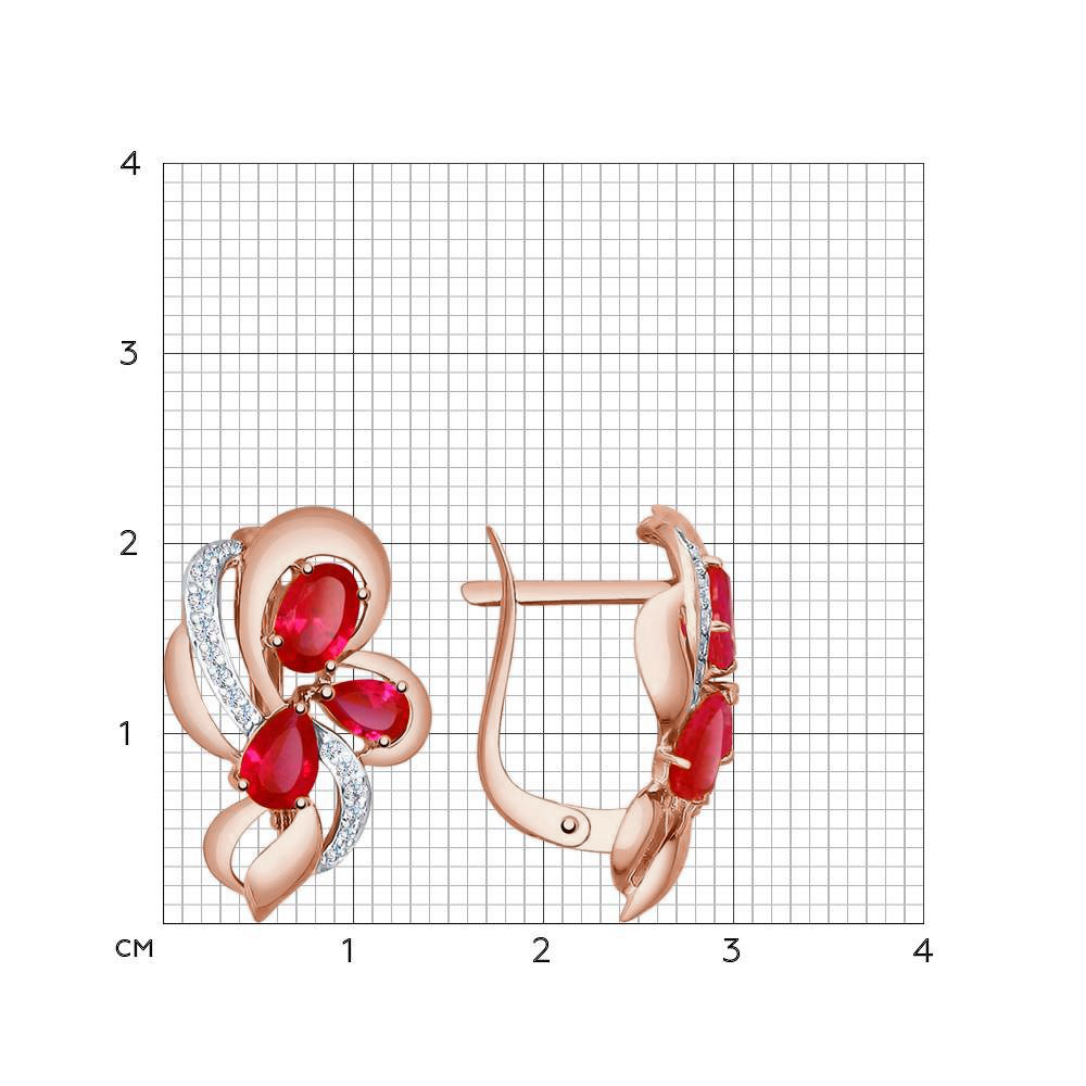 Серьги из красного золота 585 пробы с корундами и фианитами от Sokolov