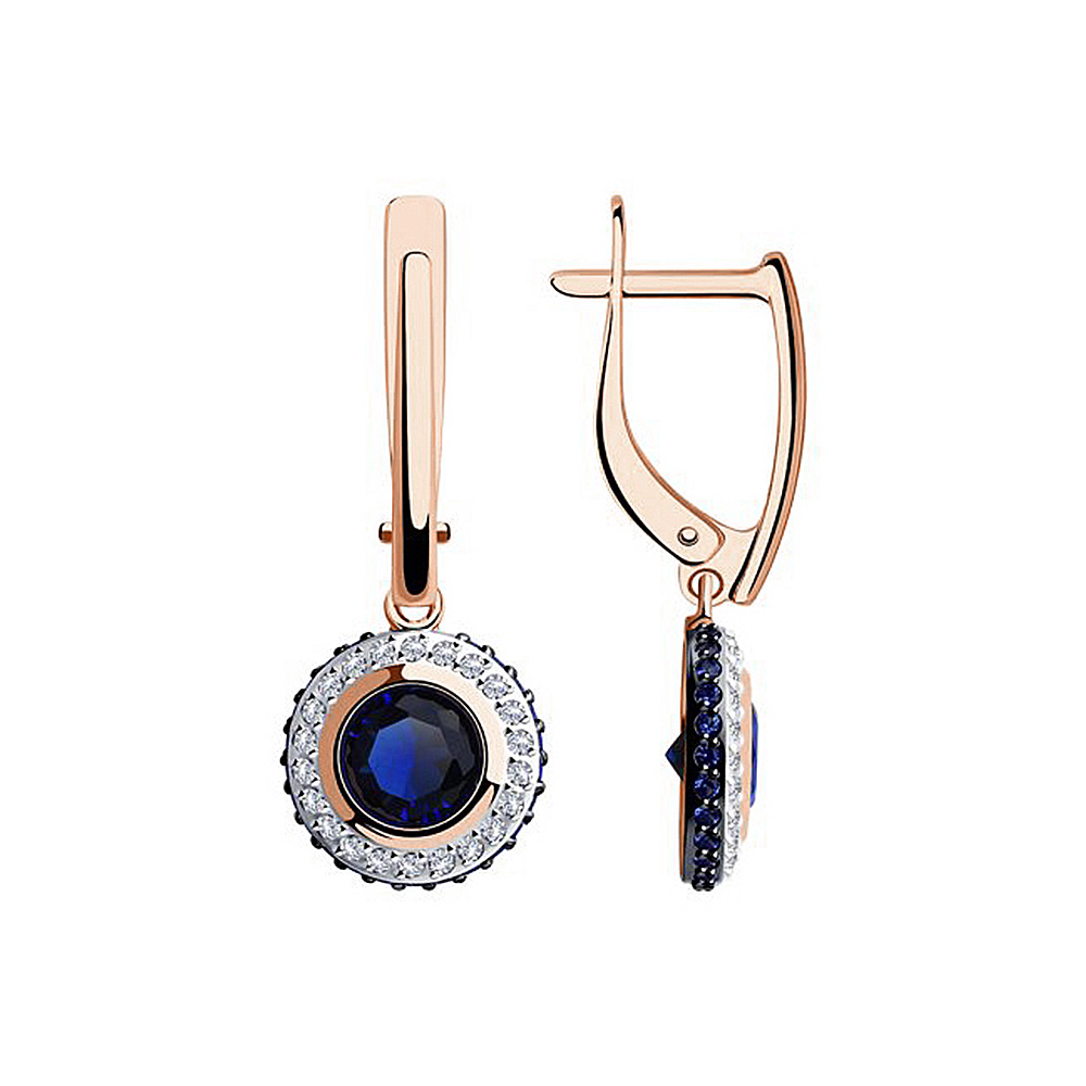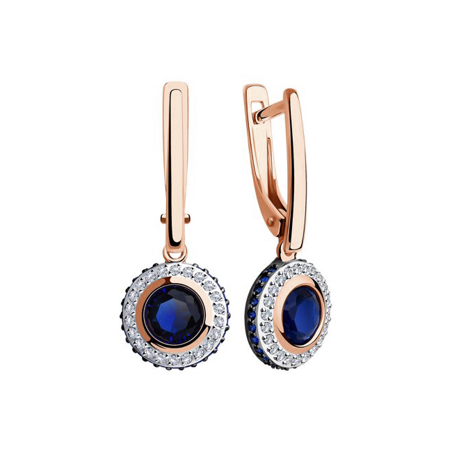 Серьги из красного золота 585 пробы с синими фианитами