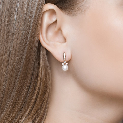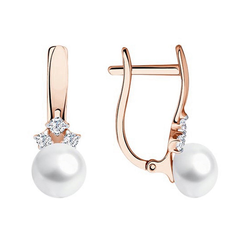 Серьги из красного золота 585 пробы с жемчугом и фианитами от Sokolov