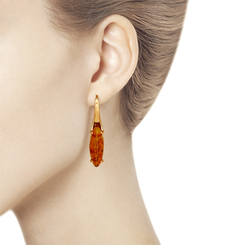 Sokolov Серьги из позолоченного серебра 925 пробы с янтарём.