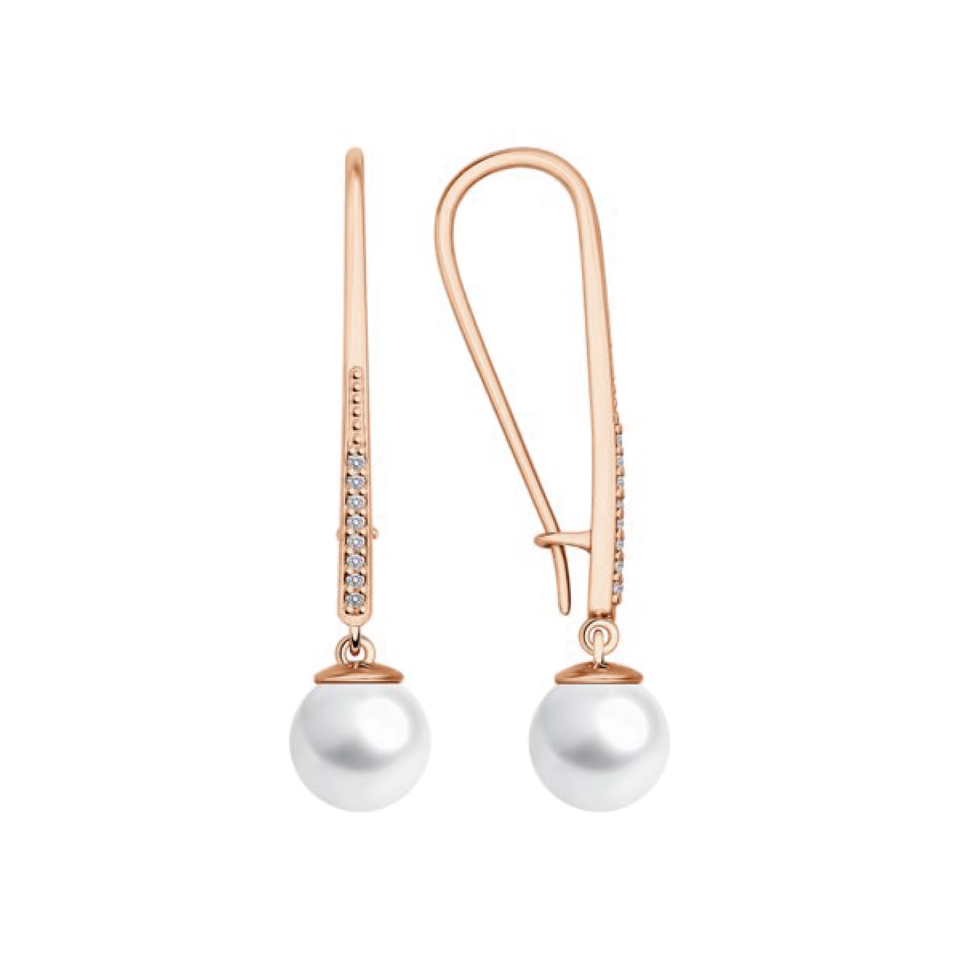 Серьги из позолоченного серебра 925 пробы с жемчугом и фианитами от SOKOLOV