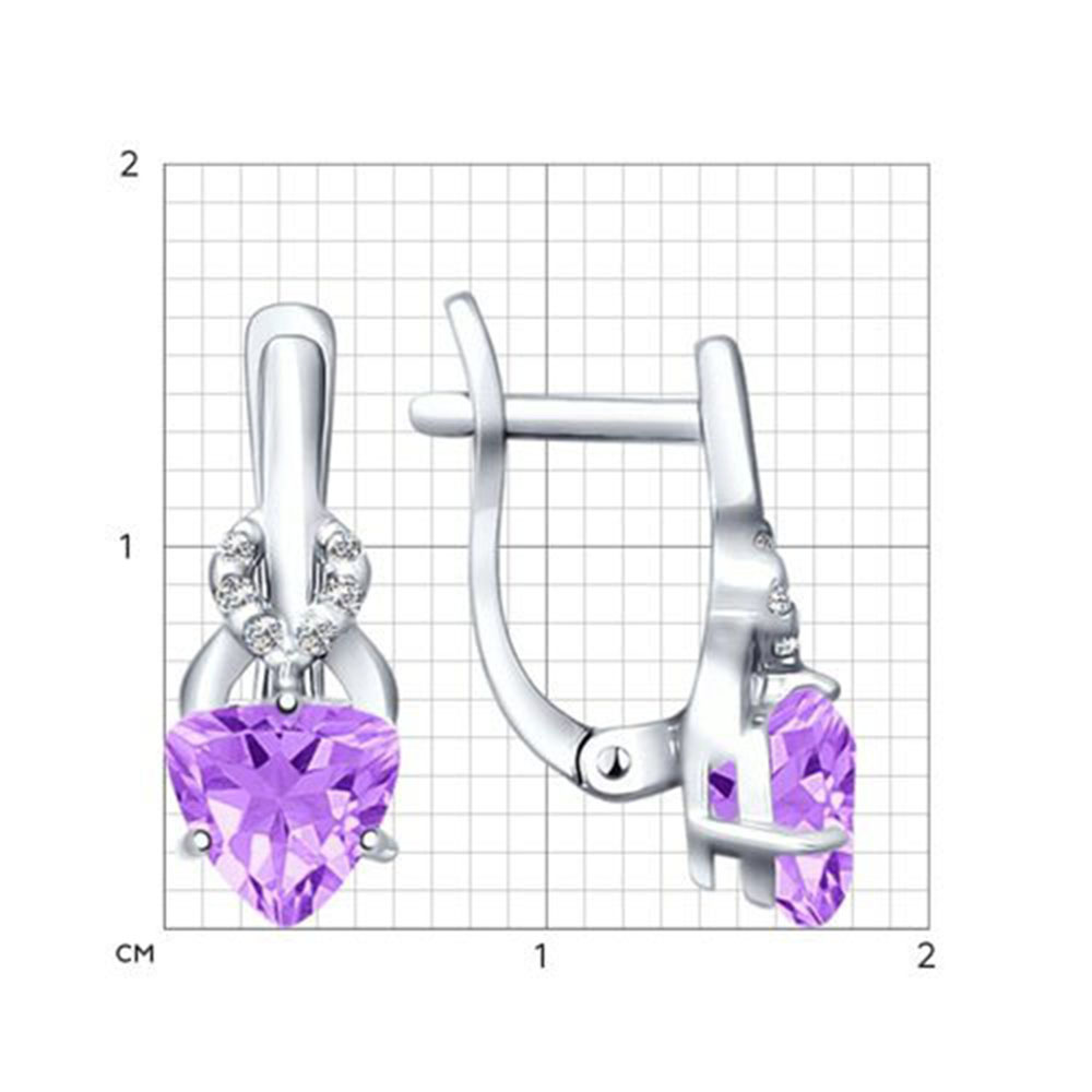 Sokolov Серьги из серебра 925 пробы с фиолетовыми аметистами и фианитами.