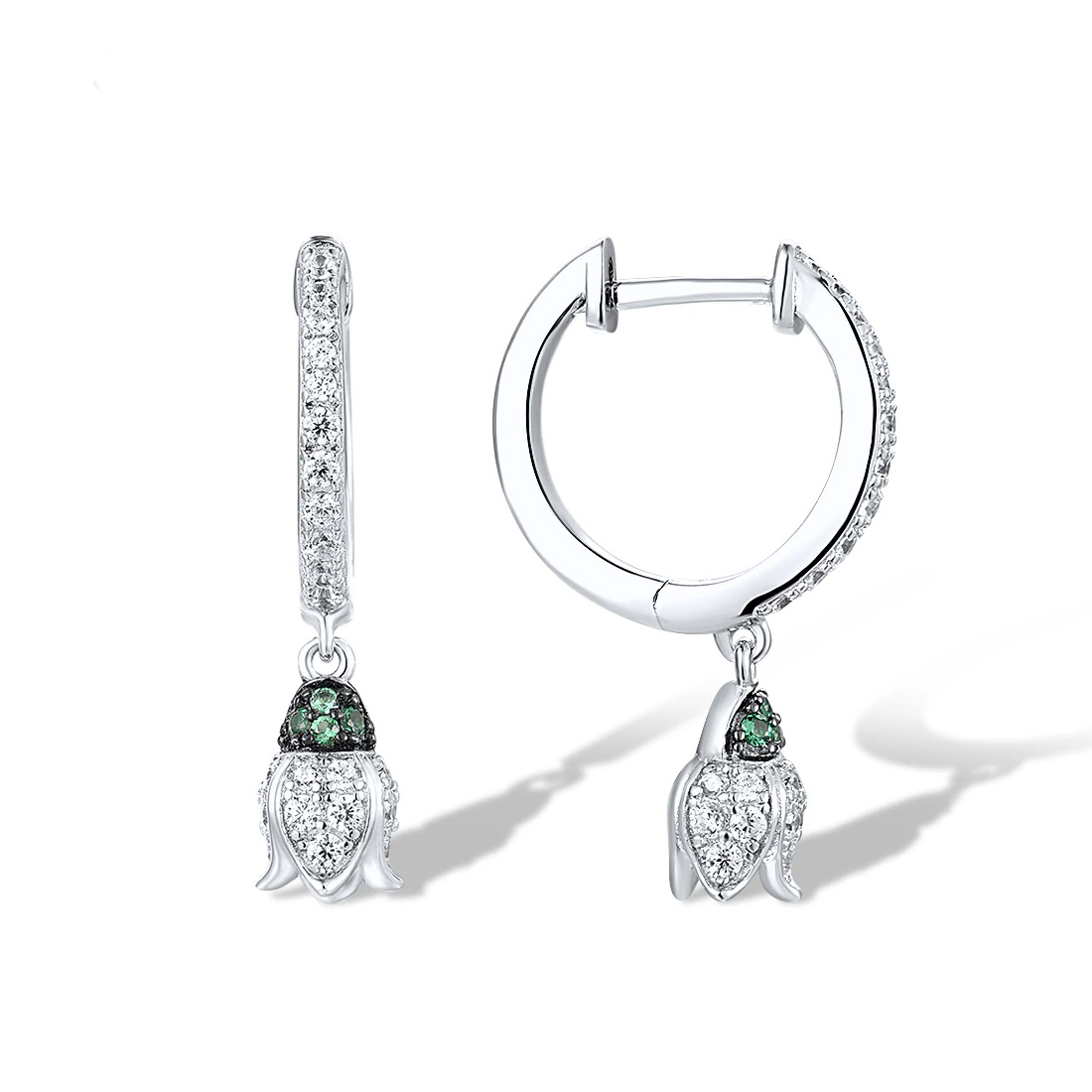 Sokolov Серьги из серебра 925 пробы с фианитами и зеленым шпинелем