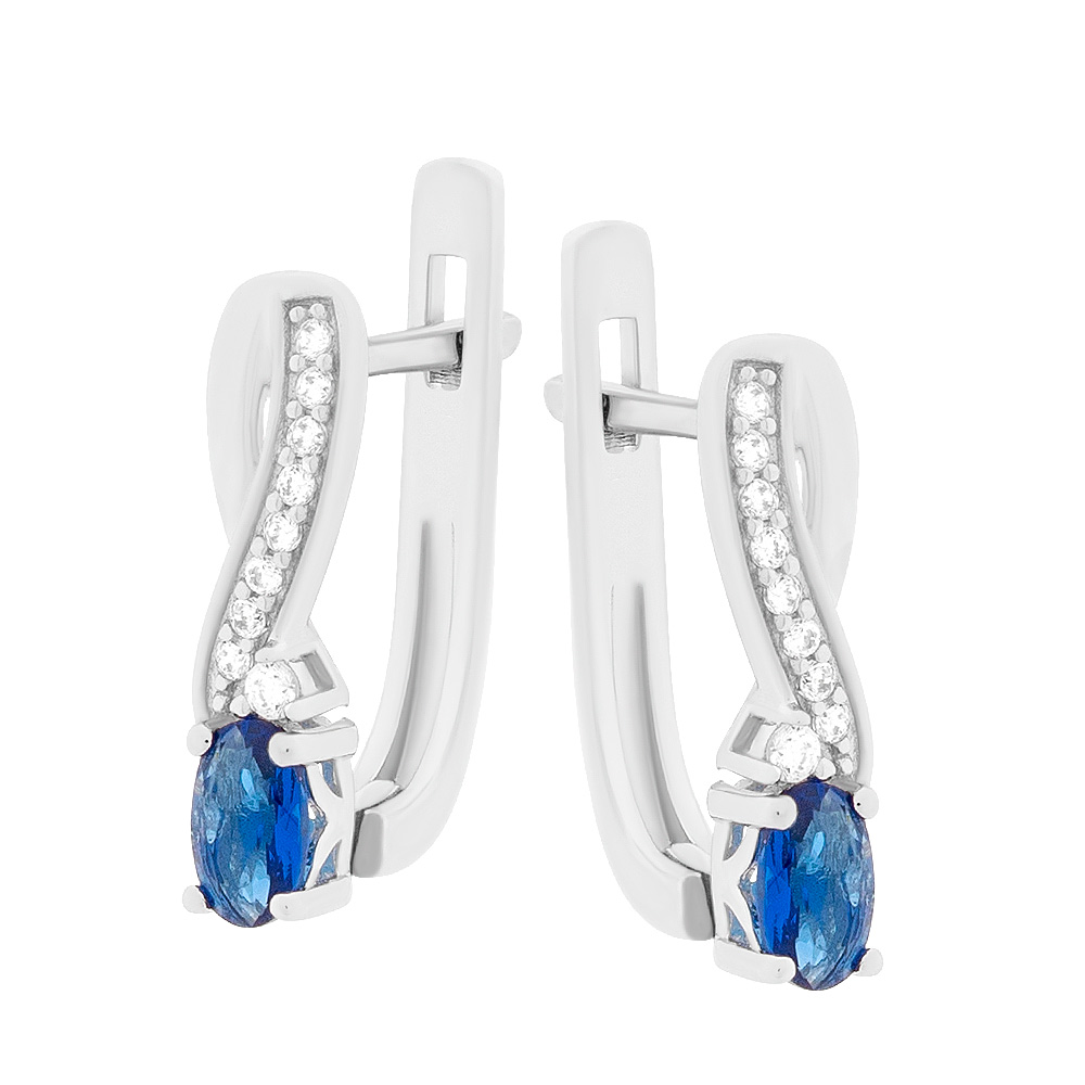 Sokolov Серьги из серебра 925 пробы с голубыми кристаллами и бесцветными фианитами
