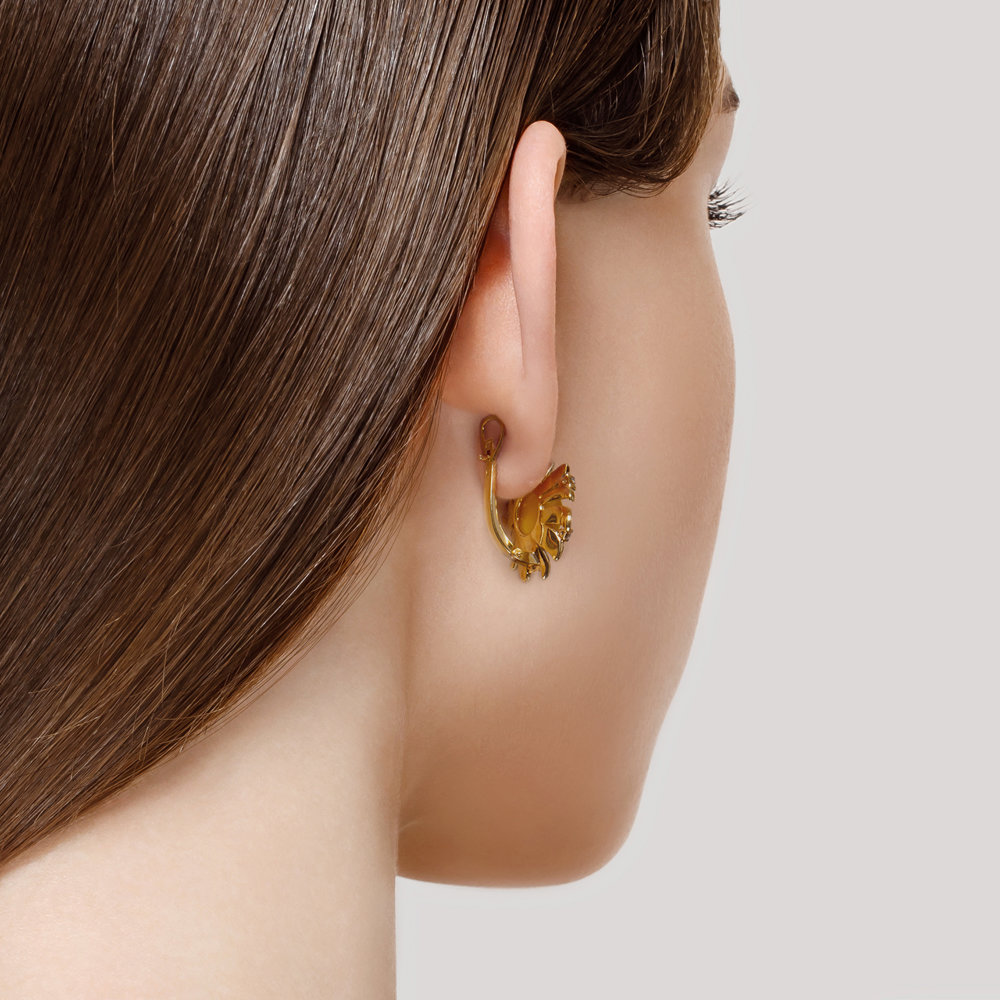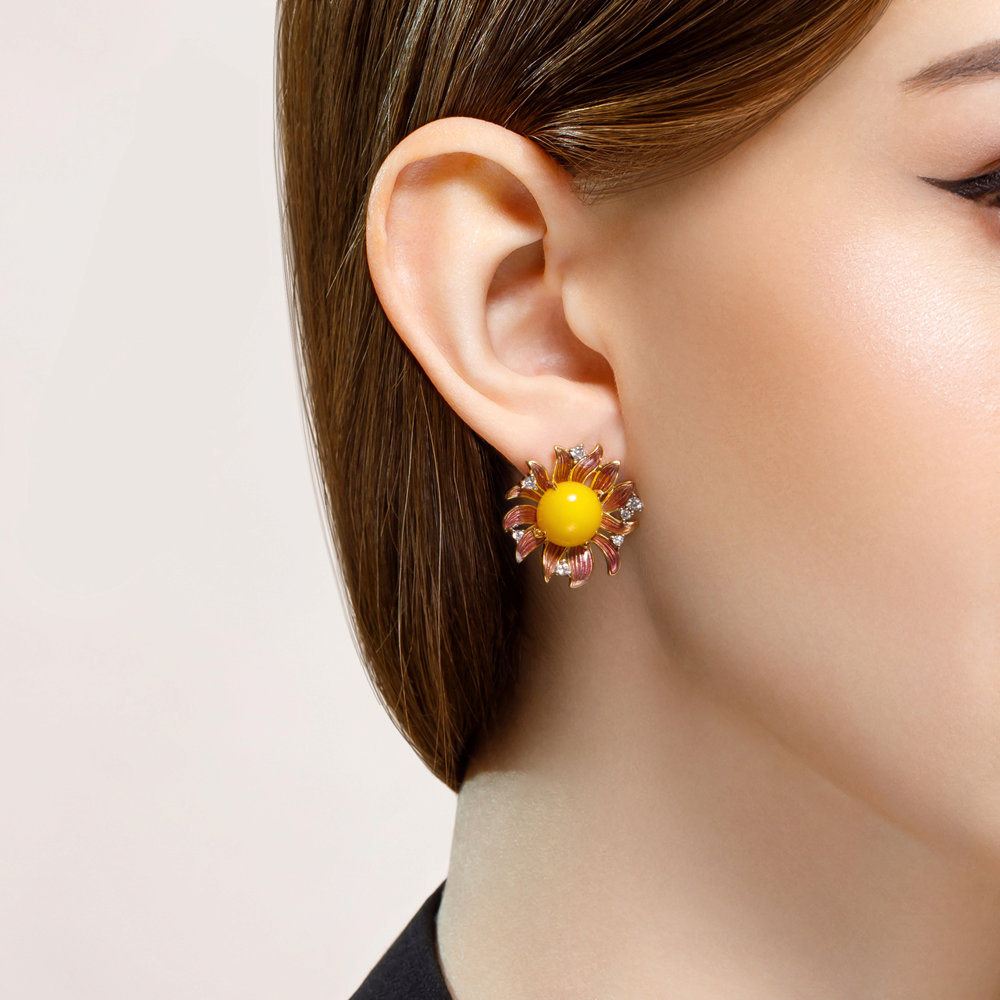 - 1х Серьги из серебра 925 пробы с янтарём, кристаллами циркония и эмалью.