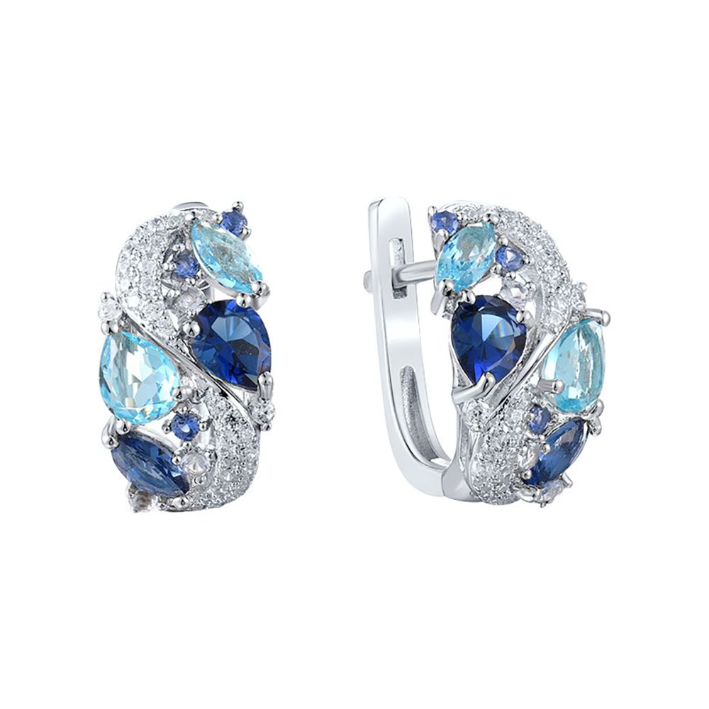Sokolov Серьги из серебра 925 пробы со светло и темно-синими кристаллами и бесцветными фианитами