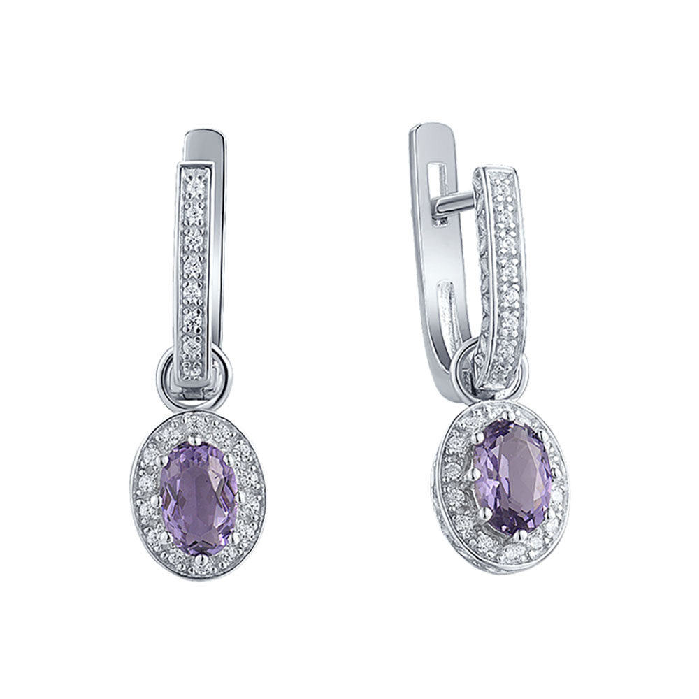 Sokolov Серьги из серебра 925 пробы с фиолетовыми кристаллами и бесцветными фианитами