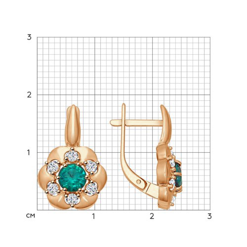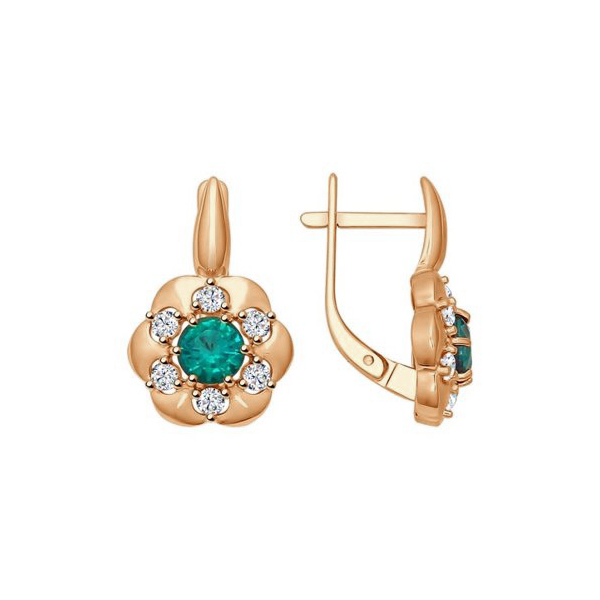Серьги из серебра 925 пробы с позолотой изумрудами и фианитами