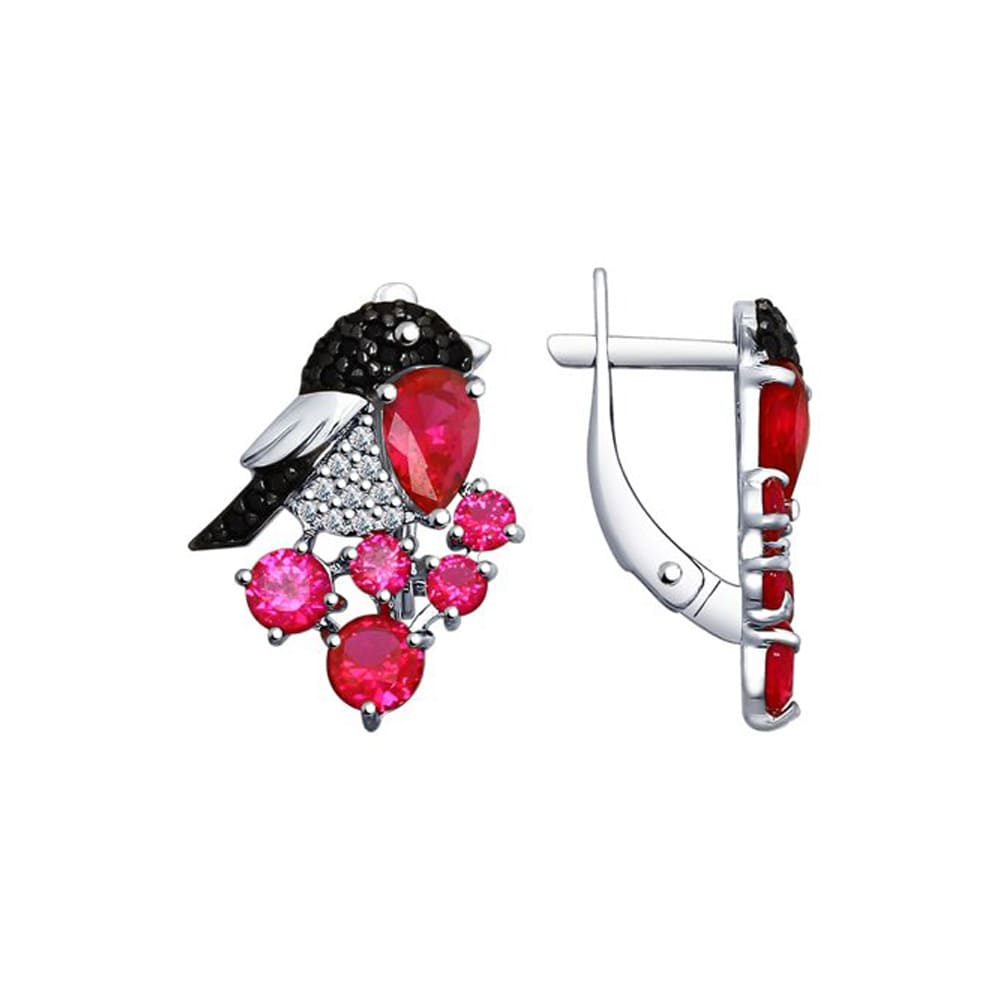 Серьги из серебра 925 пробы с красными и бесцветными синт. рубинами, красными и чёрными фианитами