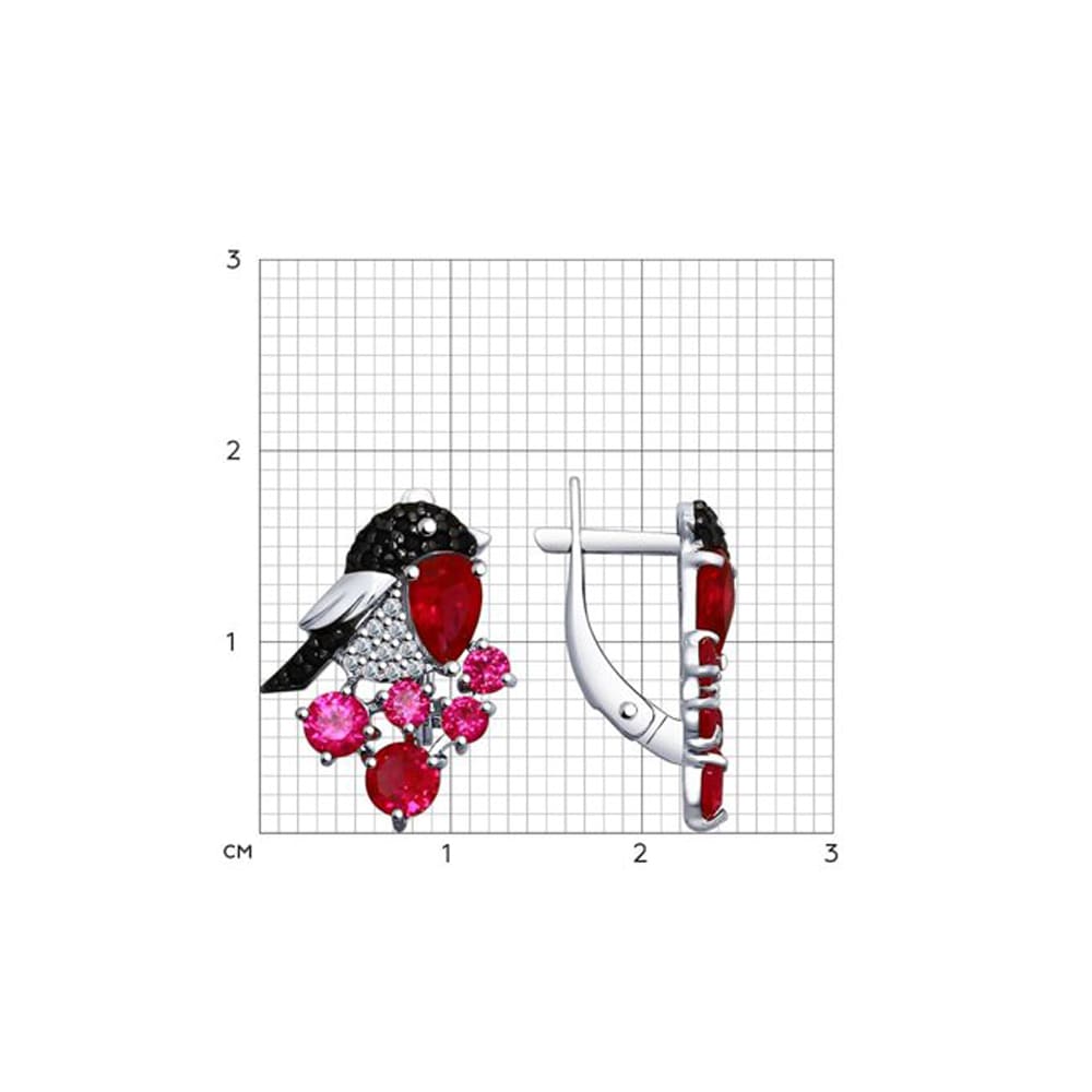 - 1х Серьги из серебра 925 пробы с красными и бесцветными рубинами (синт.), красными и чёрными фианитами