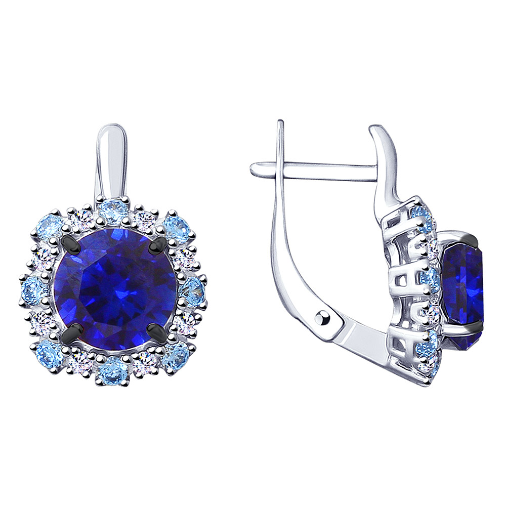 Серьги из серебра 925 пробы с синими сапфирами и фианитами от Sokolov