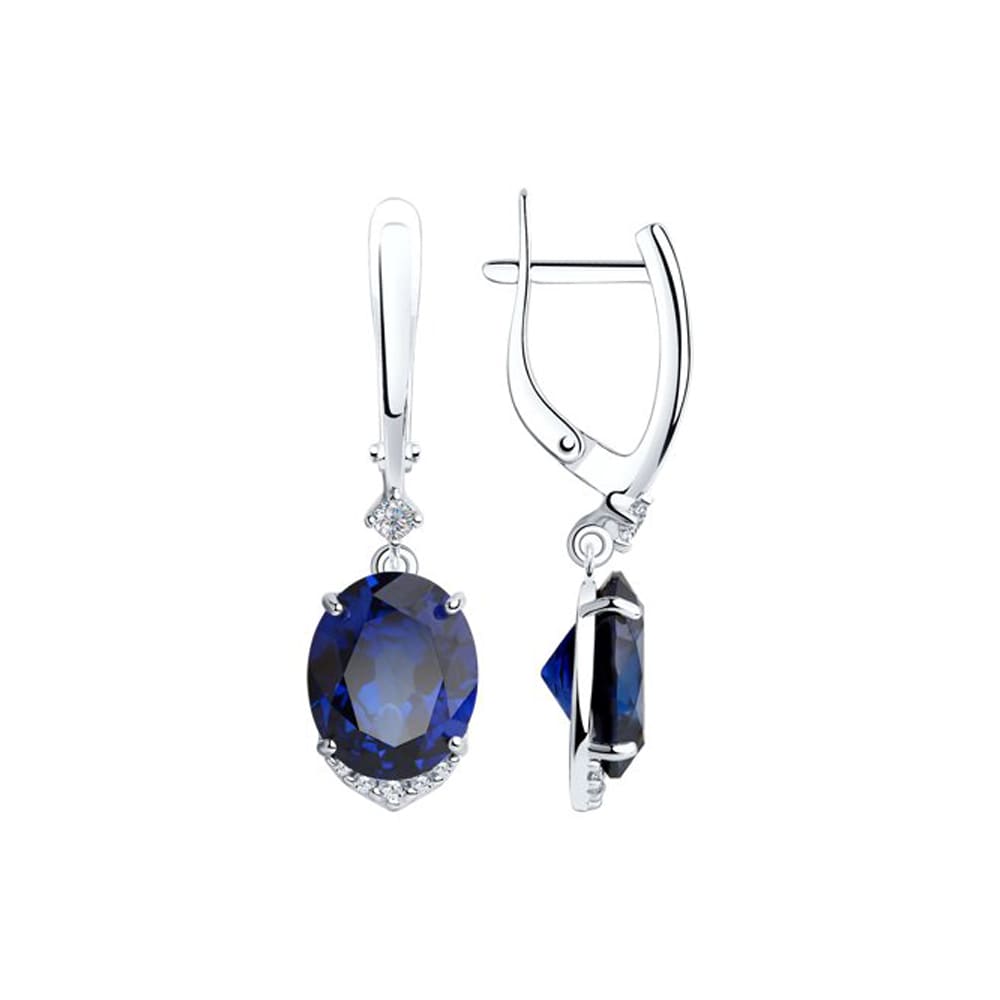 Серьги из серебра 925 пробы с синими синт. сапфирами