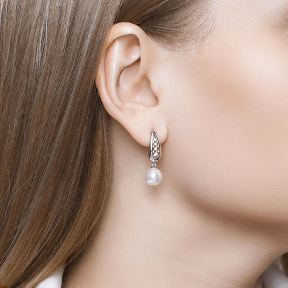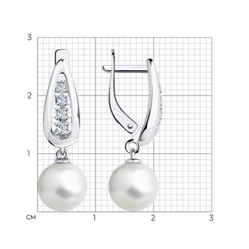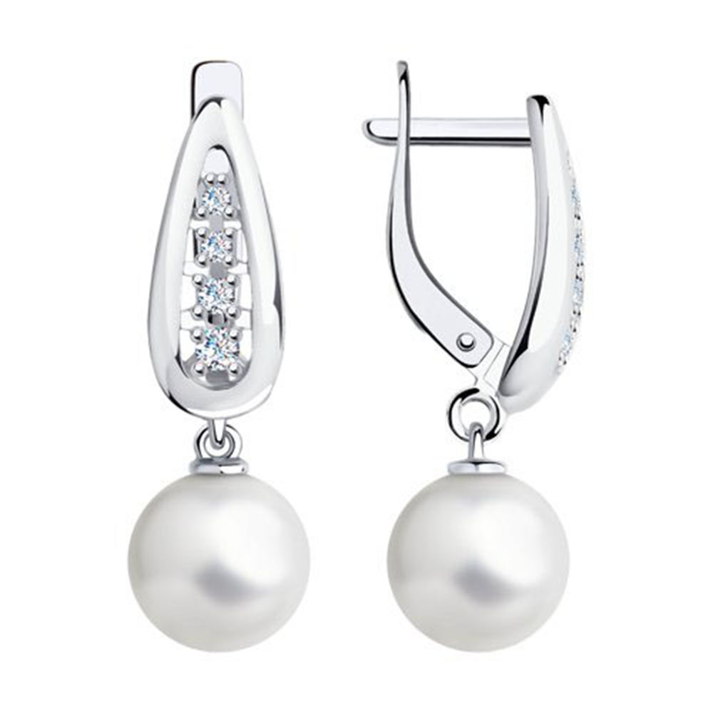 Серьги из серебра 925 пробы с синтетическим жемчугом и фианитами