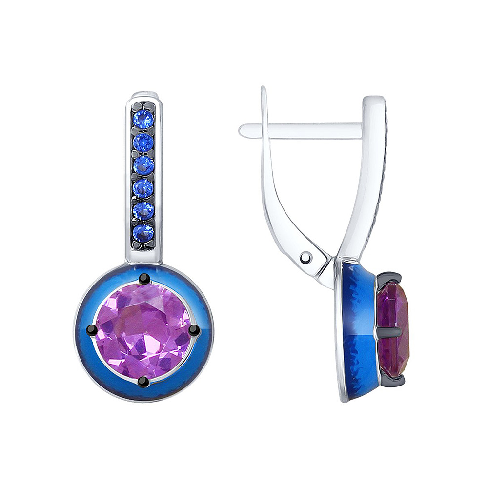Серьги из серебра 925 пробы с ситаллом, фианитами и эмалью от SOKOLOV
