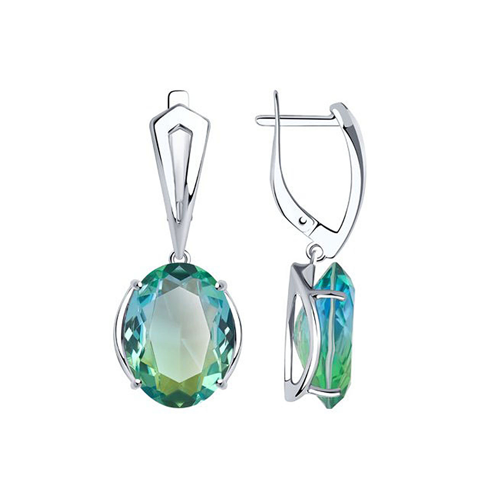 Серьги из серебра 925 пробы с зелено-голубыми ситалами.