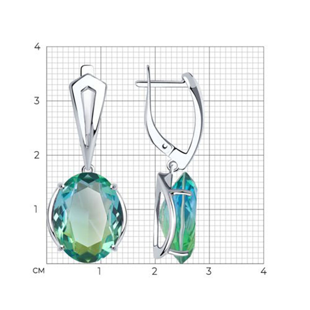 - 1х Серьги из серебра 925 пробы с зелено-голубыми ситалами.