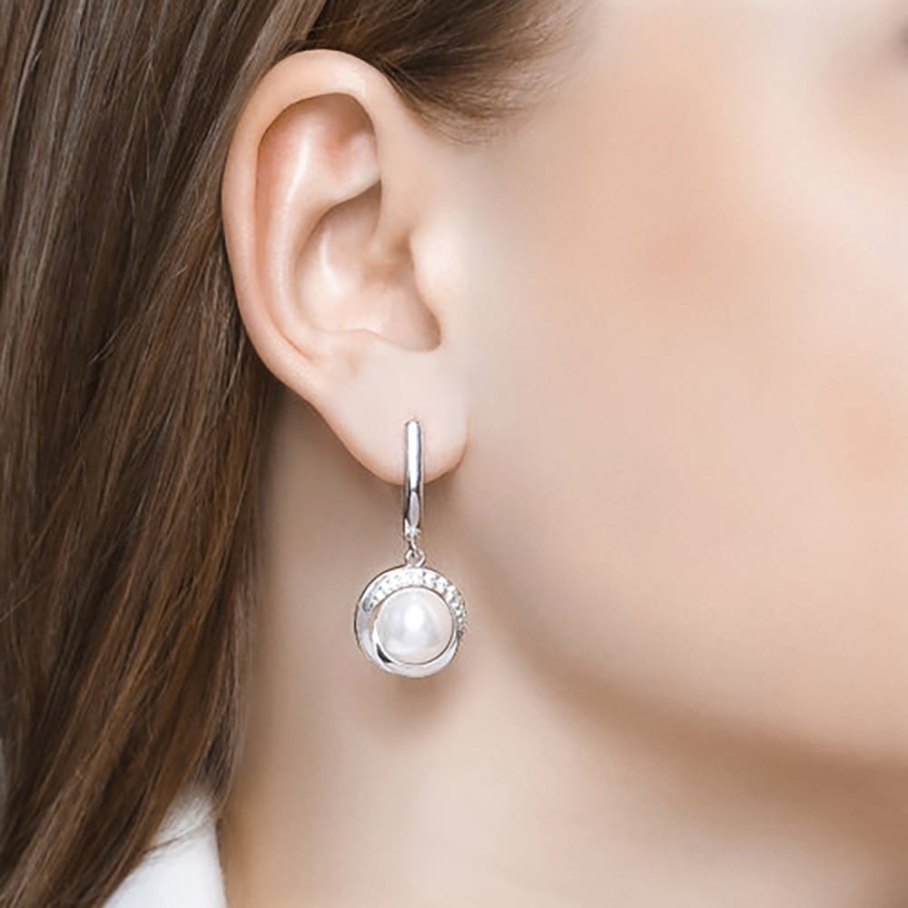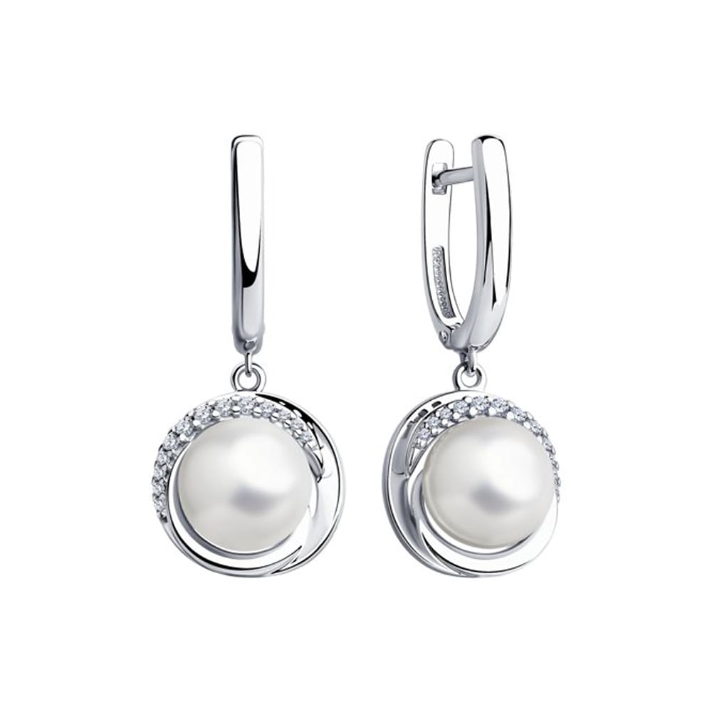 Sokolov Серьги из серебра 925 пробы с жемчугом и фианитами