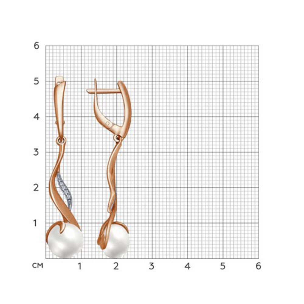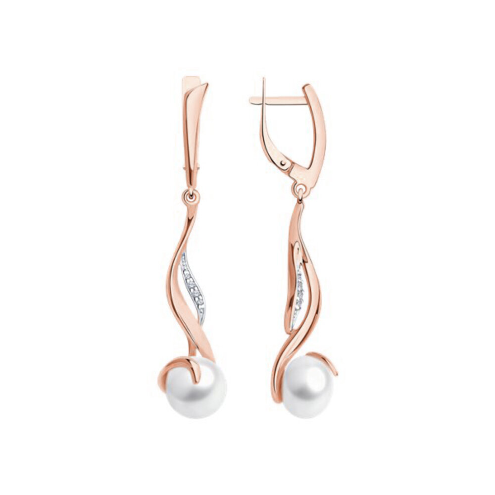 Серьги из золочёного серебра 925 пробы с жемчугом и фианитами от SOKOLOV
