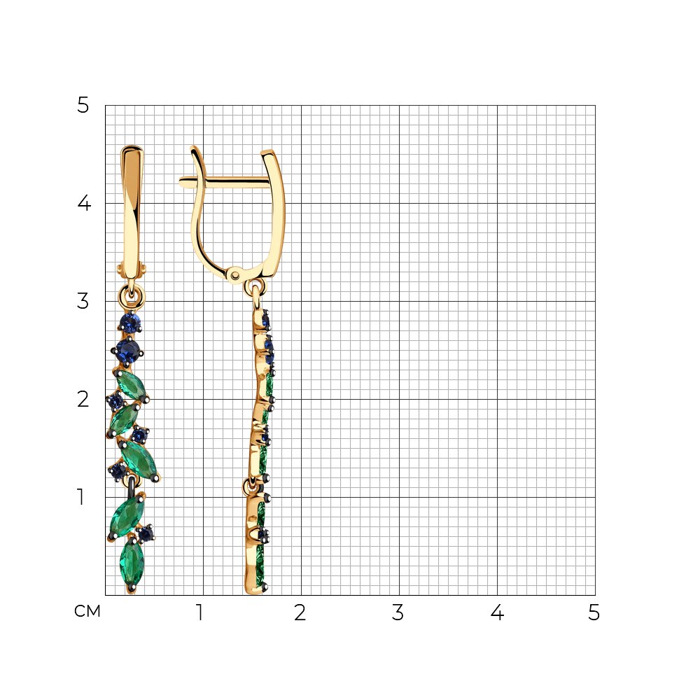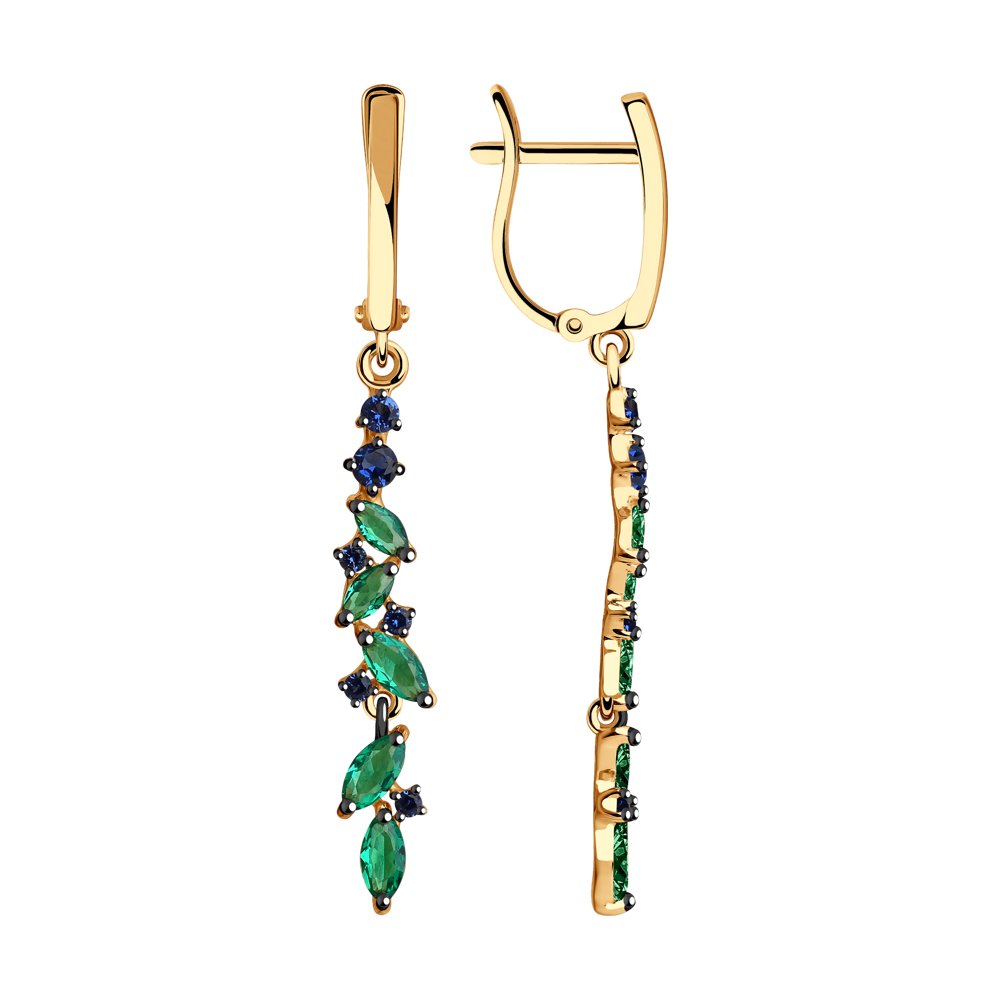 Серьги из золота 585 пробы с зелёными и синими фианитами