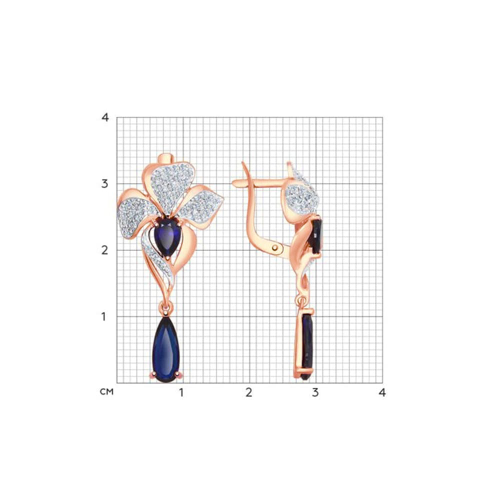 - 1 х Серьги из золота 585 пробы с сапфирами (синт.) и фианитами.
