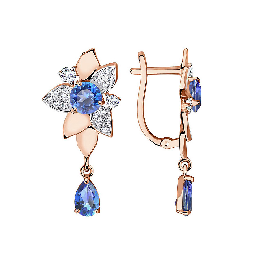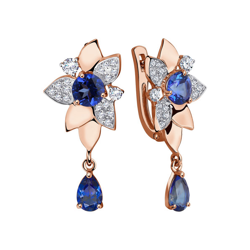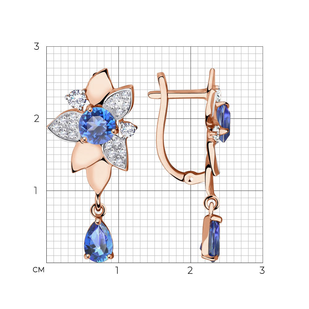 Серьги из золота 585 пробы с синими топазами и бесцветными фианитами