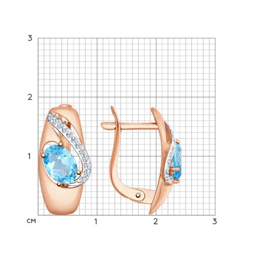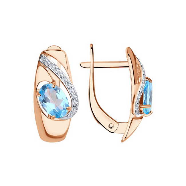 - 1 х Серьги из золота 585 пробы с топазами и фианитами