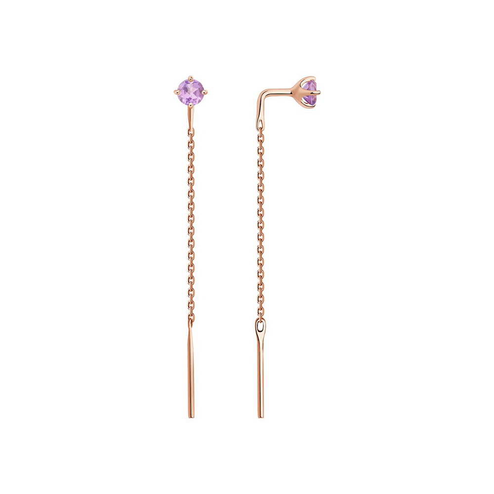 Серьги-протяжки из красного золота 585 пробы с аметистами от Sokolov