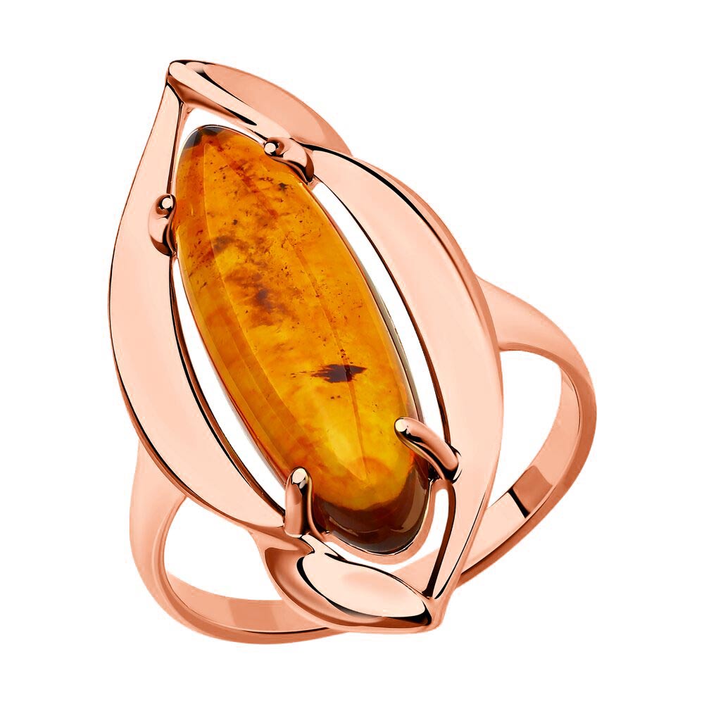 Кольцо из позолоченного серебра 925 пробы с янтарём