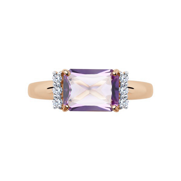 Золотое кольцо 585 пробы с фиолетовым аметистом и бесцветными фианитами