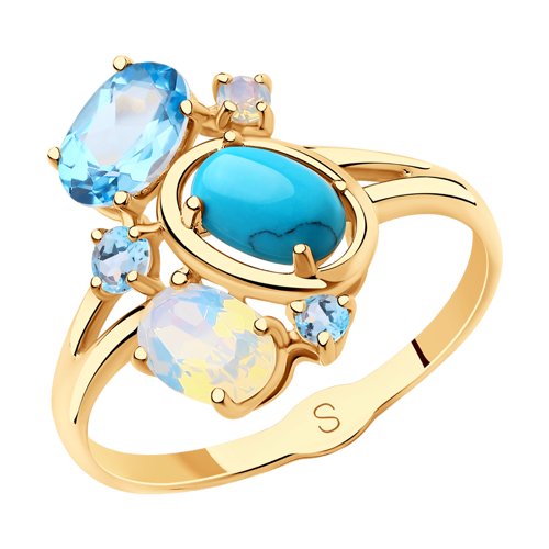 Женское кольцо из розового золота 585 пробы с бирюзой, ситалом и топазом | Kaufbei Schmuck 70902171