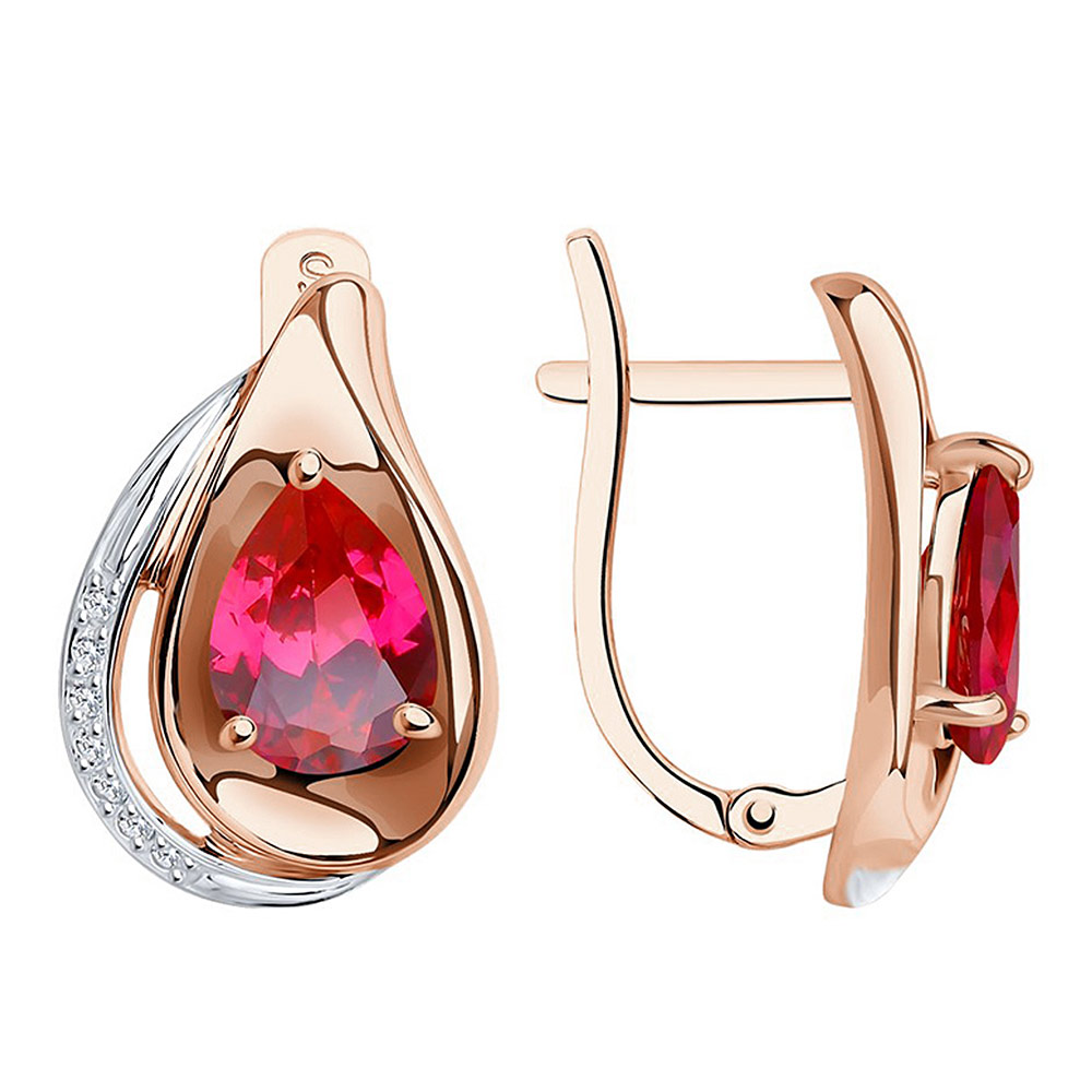 Sokolov Золотые серьги 585 пробы с красными синтетическими рубинами и фианитами.