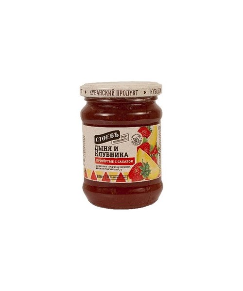Стоевъ Дыня и Клубника протертая с сахаром, 280г