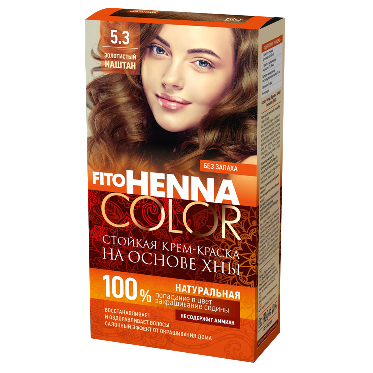 - Стойкая крем-краска для волос на основе хны Fito Henna Color, 5.3, тон Золотистый каштан, 115 мл