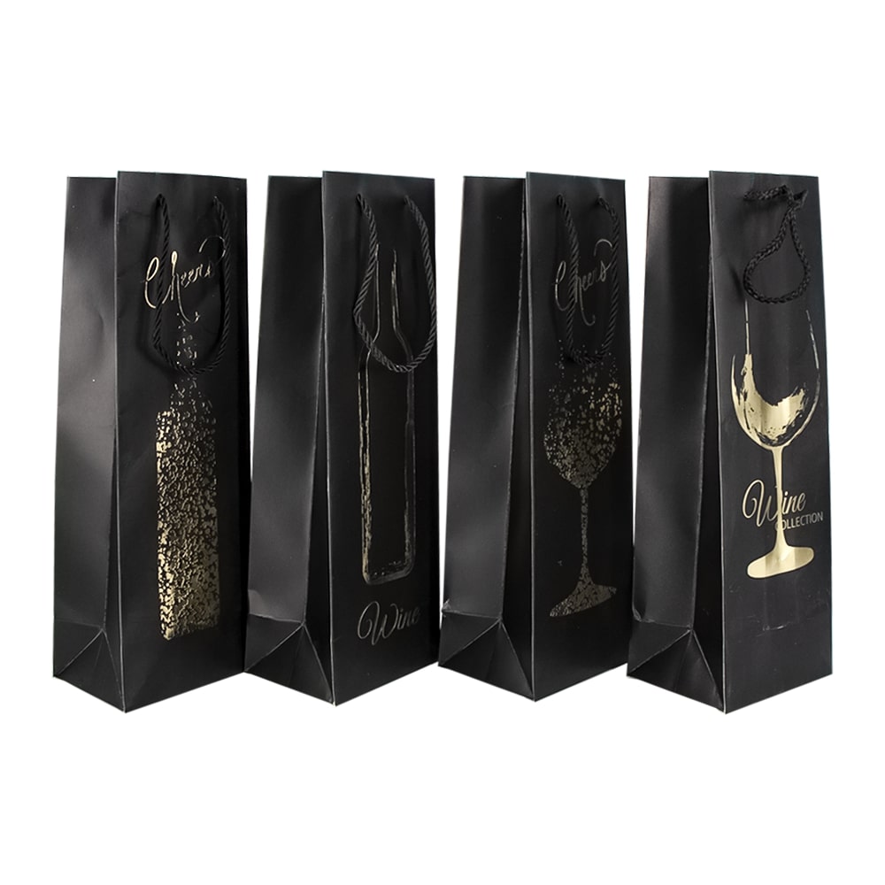 - Содержимое набора: 12 черных пакетов для бутылок с золотыми акцентами - идеально подходят для различных подарков