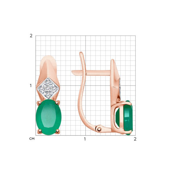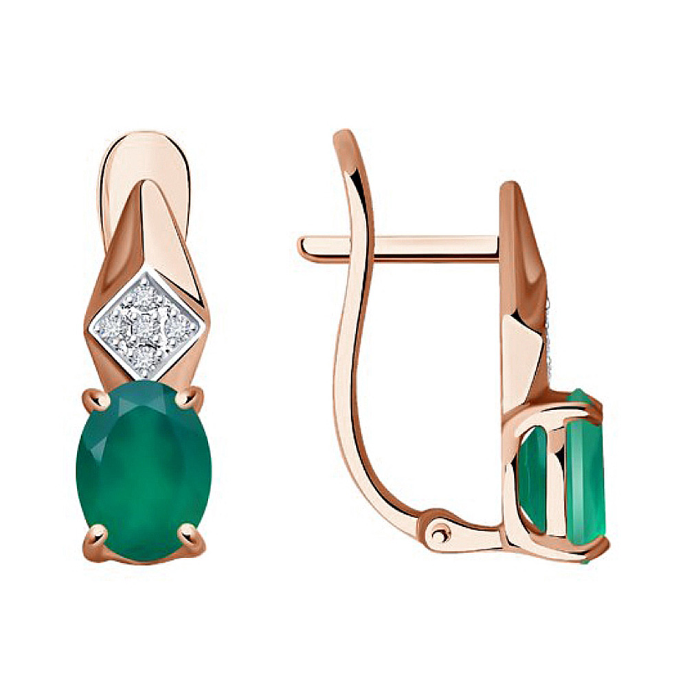 Sokolov Серьги из красного золота 585 пробы с зелёными агатами и фианитами.