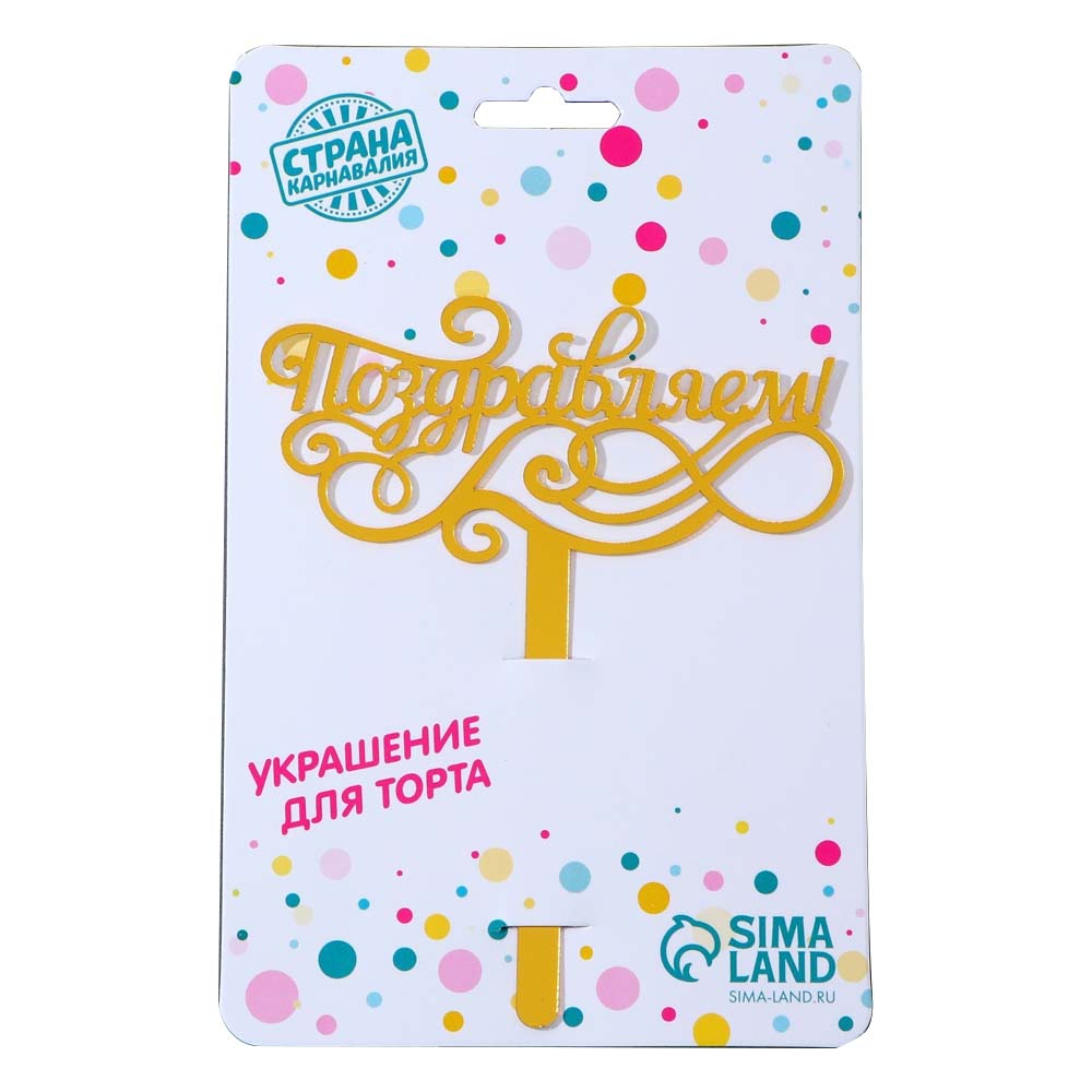 Топпер Поздравляем, акрил, золотистый, 13 см