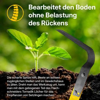 Плоскорез ТМ "Tornadica" это инструмент, который дает возможность обрабатывать землю без нагрузки на спину, прикладывая при этом минимальное количество усилий. Это так же многофункциональный инструмент, позволяющий рыхлить почву, удалять сорняки, формировать борозды и окучивать межрядные пространства.Характеристики: