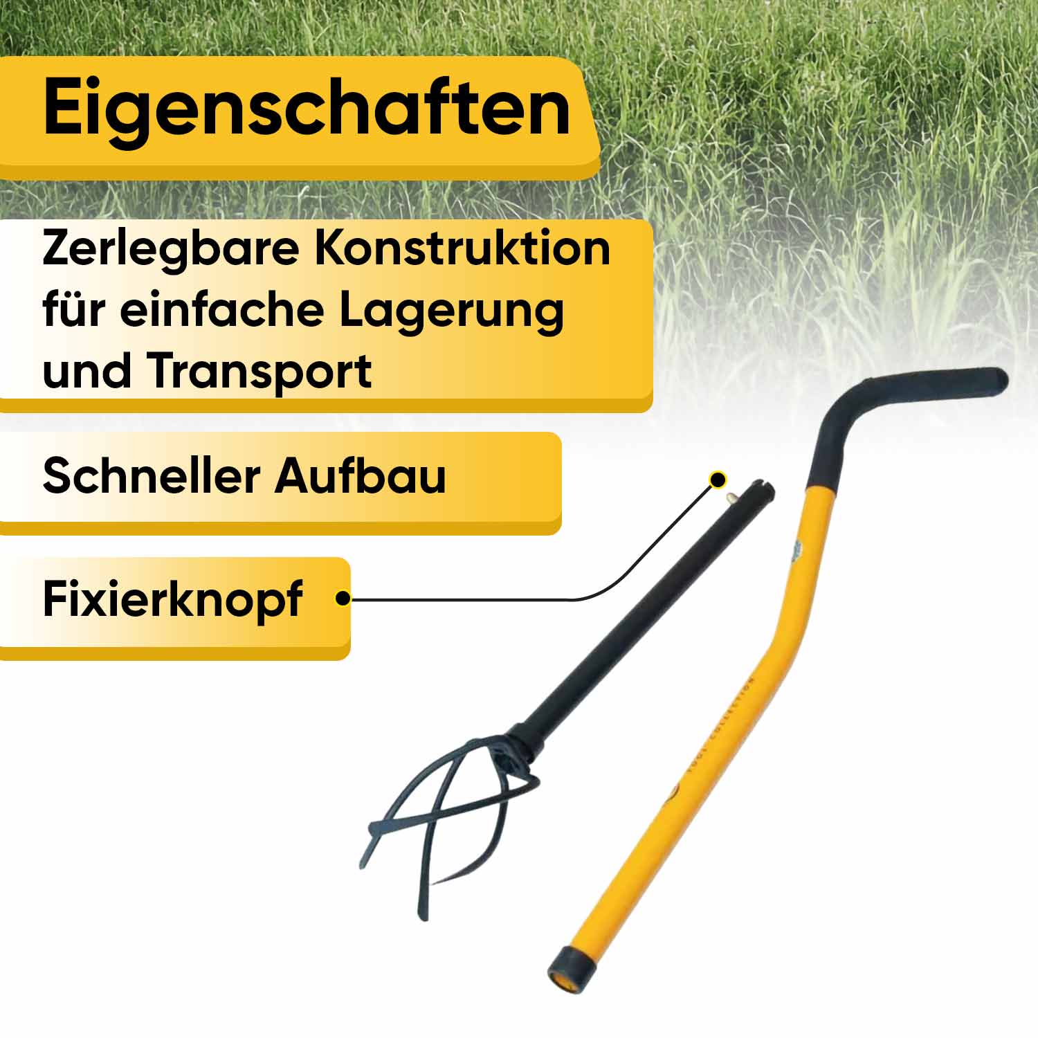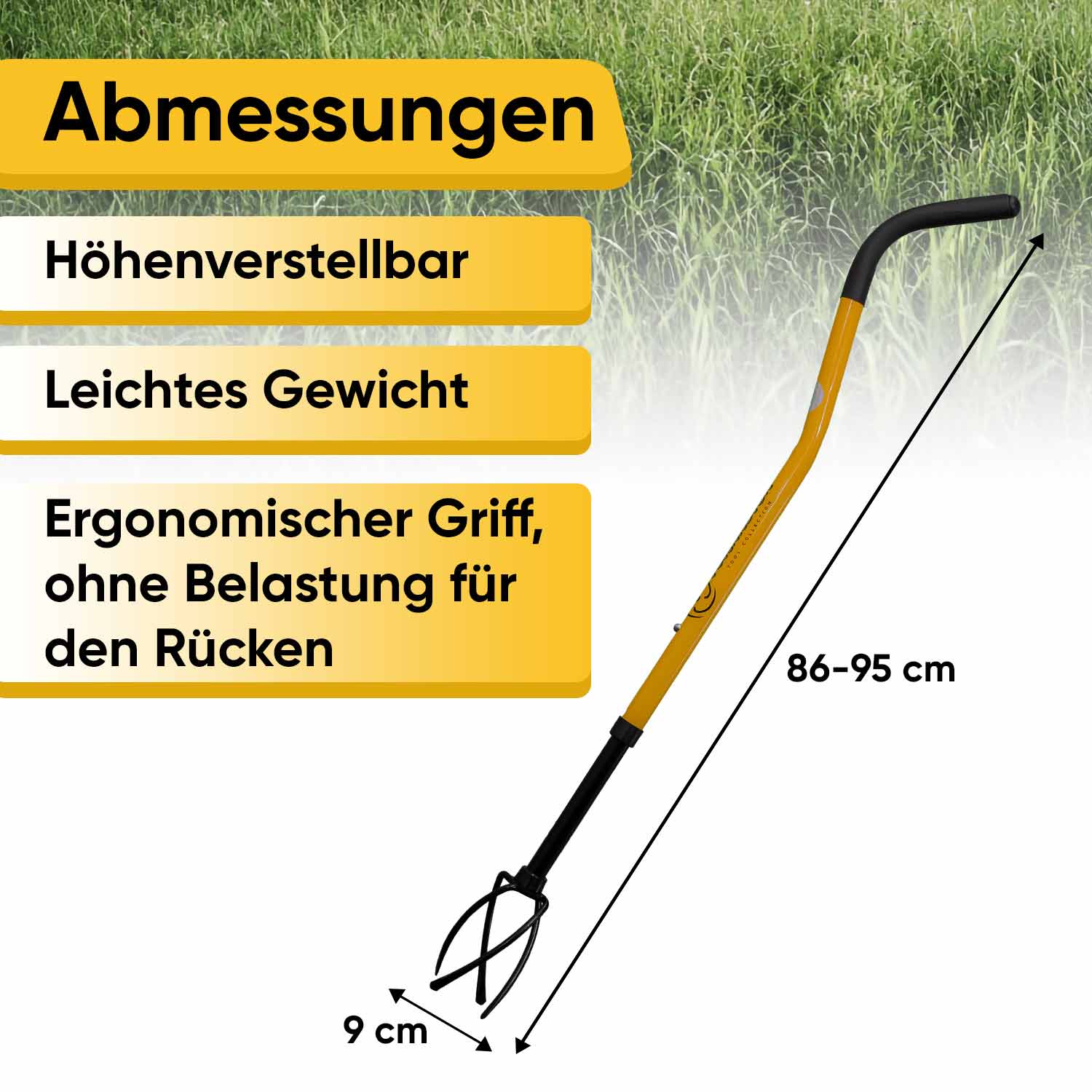 Мини-культиватор Tornadica состоит из основной рабочей части, которая представляет собой четыре спиралевидные зубья, изготовленных из специального типа стали с применением ручной ковки, и рычага в виде рукоятки с возможностью регулировки высоты инструмента под ваш рост в двух положениях. Рукоятка выполнена из облегчённой стальной трубы с особым изгибом, который обеспечивает возможность поворачивать инструмент на 360 градусов при формировании посадочных лунок.