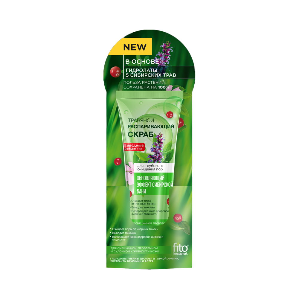 Насыщенная формула скраба на основе 5 полезных трав дарит коже невероятную гладкость и сияние. Скраб приятно прогревает кожу, раскрывает поры, очищая их от черных точек, и выводит токсины.