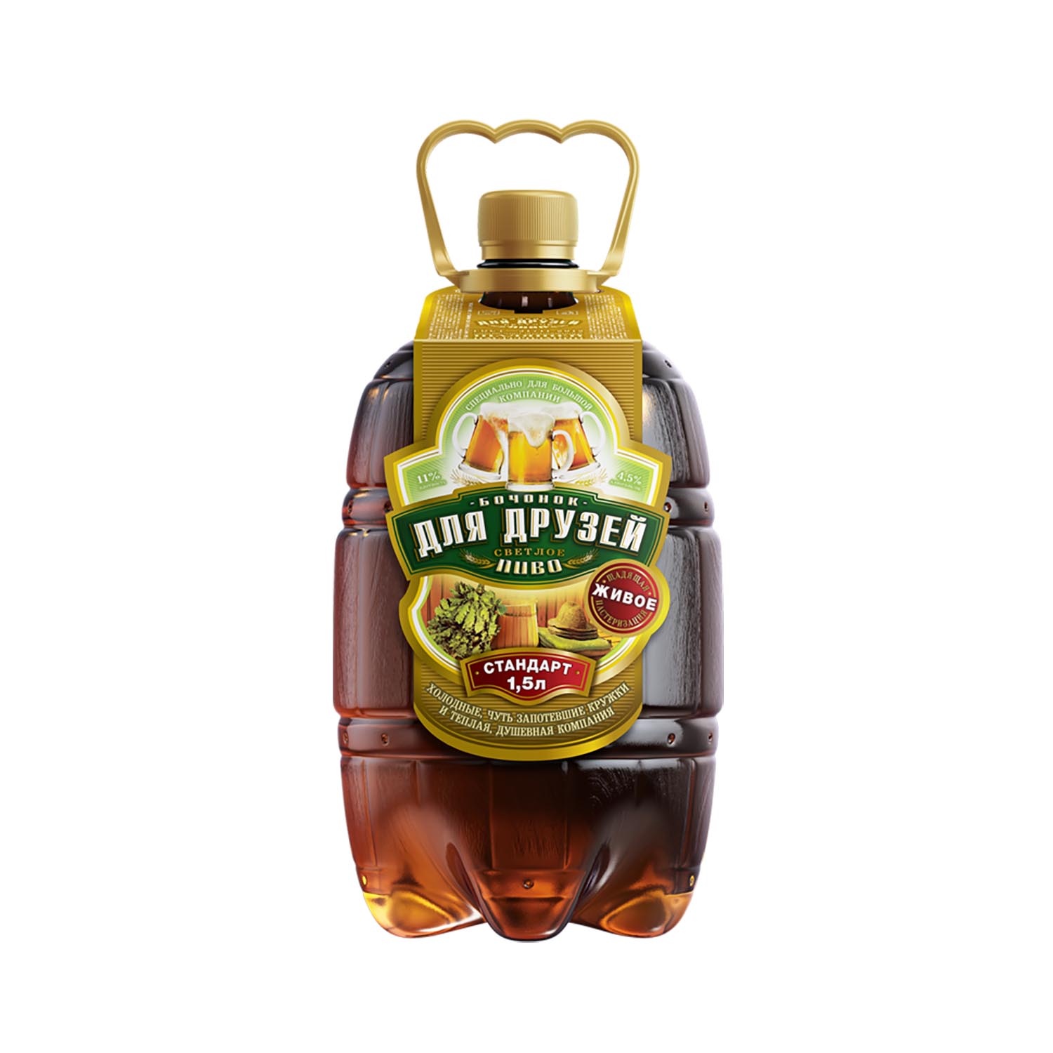 Трехсосенское Пиво Бочонок для друзей, светлое, живое, 4,5% алк. об., плотность 11% (1.5 л, тара вкл.)