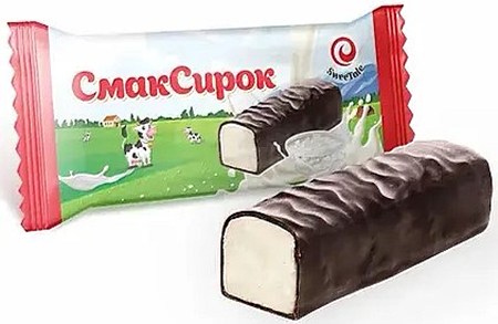 Смак Сырок" - эксклюзивное взбитое пралине с нежным и насыщенным творожным вкусом.Состав: Сахар, вода питьевая, какао-содержащая жировая глазурь 20% (сахар, полностью гидрогенизированное пальмовое масло, алкализованный какао-порошок 2,0%, эмульгатор: соевый лецитин; ароматизатор: ванилин; соль), рафинированный растительный жир: подсолнечное, пальмовое масло, патока, модифицированный картофельный крахмал, молоко сладкое сгущенное(молоко цельное, сахар, лактоза), белковый порошок, загуститель: агар-агар, регулятор кислотности: лимонная кислота, ароматизатор: творожный крем, консерванты: Е202, Е211.