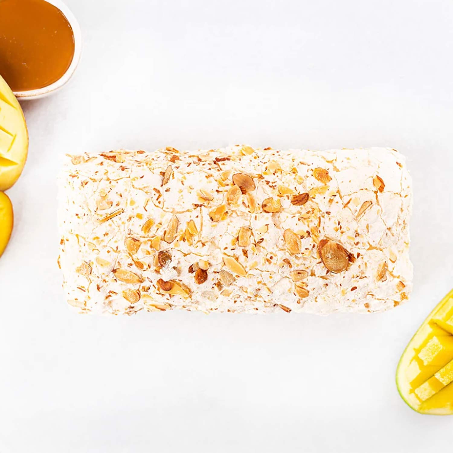 Состав: сахар, вареное сгущенное молоко с сахаром (18%) (сахар (сахароза, лактоза), сухое обезжиренное молоко, вода, масло), яйцо, сгущенное цельное молоко с сахаром (нормализованное молоко, сахар (сахароза, лактоза)), растительные масляные сливки (очищенная вода, рафинированное дезодорированное кокосовое масло, сахар, эмульгаторы: Глицерин, молочная кислота, диацетилвиниловые и жирные эфиры кислот, моно- и диглицериды жирных кислот, микрокристаллическая целлюлоза, соевый лецитин; увлажнитель глицерин, молочный белок, стабилизатор карбоксиметилцеллюлоза натриевая соль, соль), вода очищенная, крахмал кукурузный, ядра миндаля, сок лимона, желирующий агент желатин, манго с/м, регулятор кислотности лимонная кислота, ароматизаторы, натуральный краситель куркумин, консервант сорбиновая кислота.