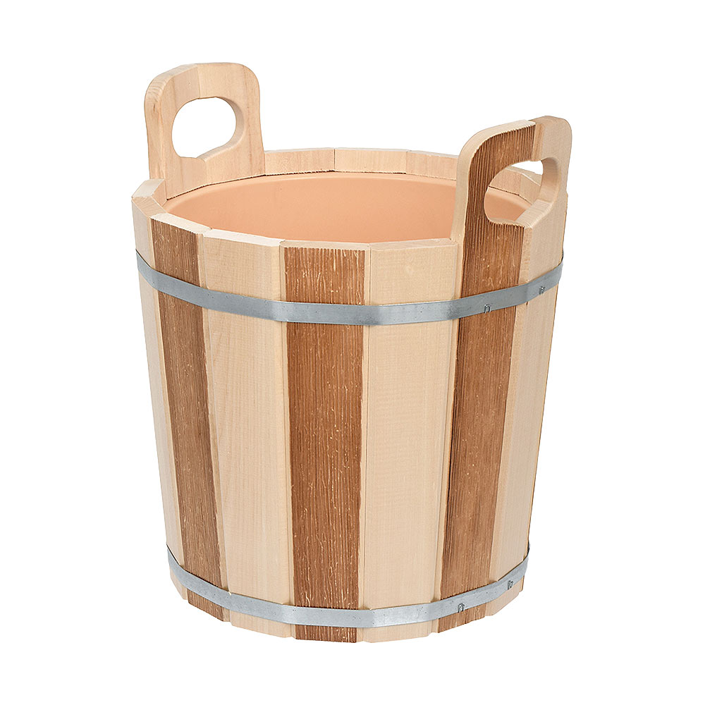 - ведро для бани или сауны круглое с пластиковой вставкой и ободком из нержавеющей стали