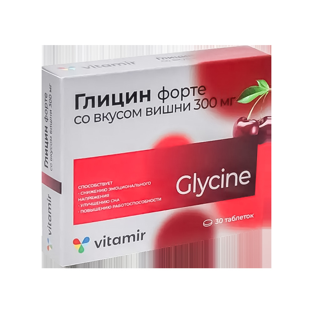 VITAMIR Глицин Форте со вкусом вишни, 30 таблеток, 300 мг
