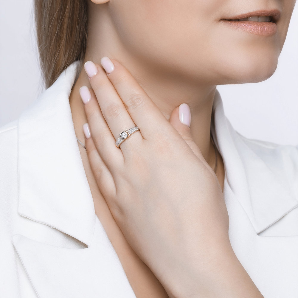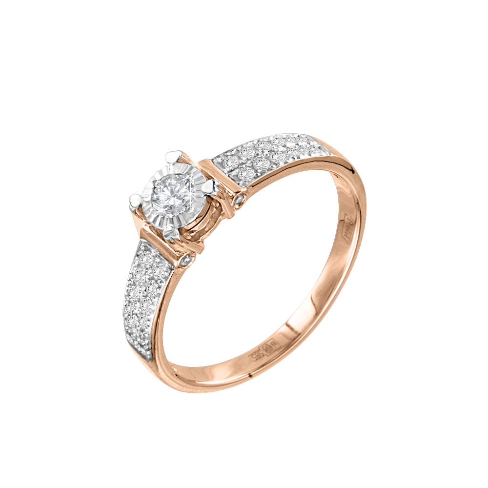 Восхитительное женское кольцо из красного золота 585 пробы, с бриллиантом по центру и россыпью бриллиантов по бокам, 0,27 ct. WSI