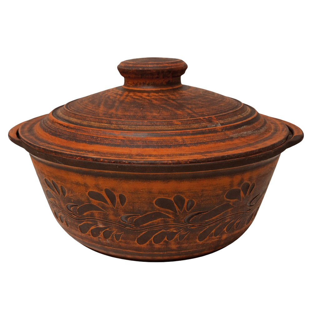 Жаровня из натуральной глины с ручками и крышкой, 2 литра