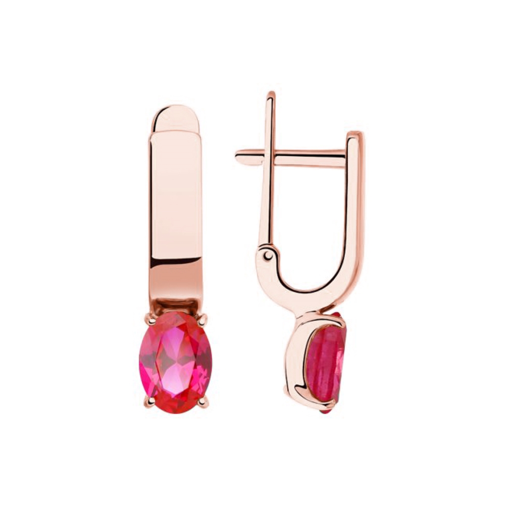 - 1х Женские золотые серьги с красными корундами 585 пробы